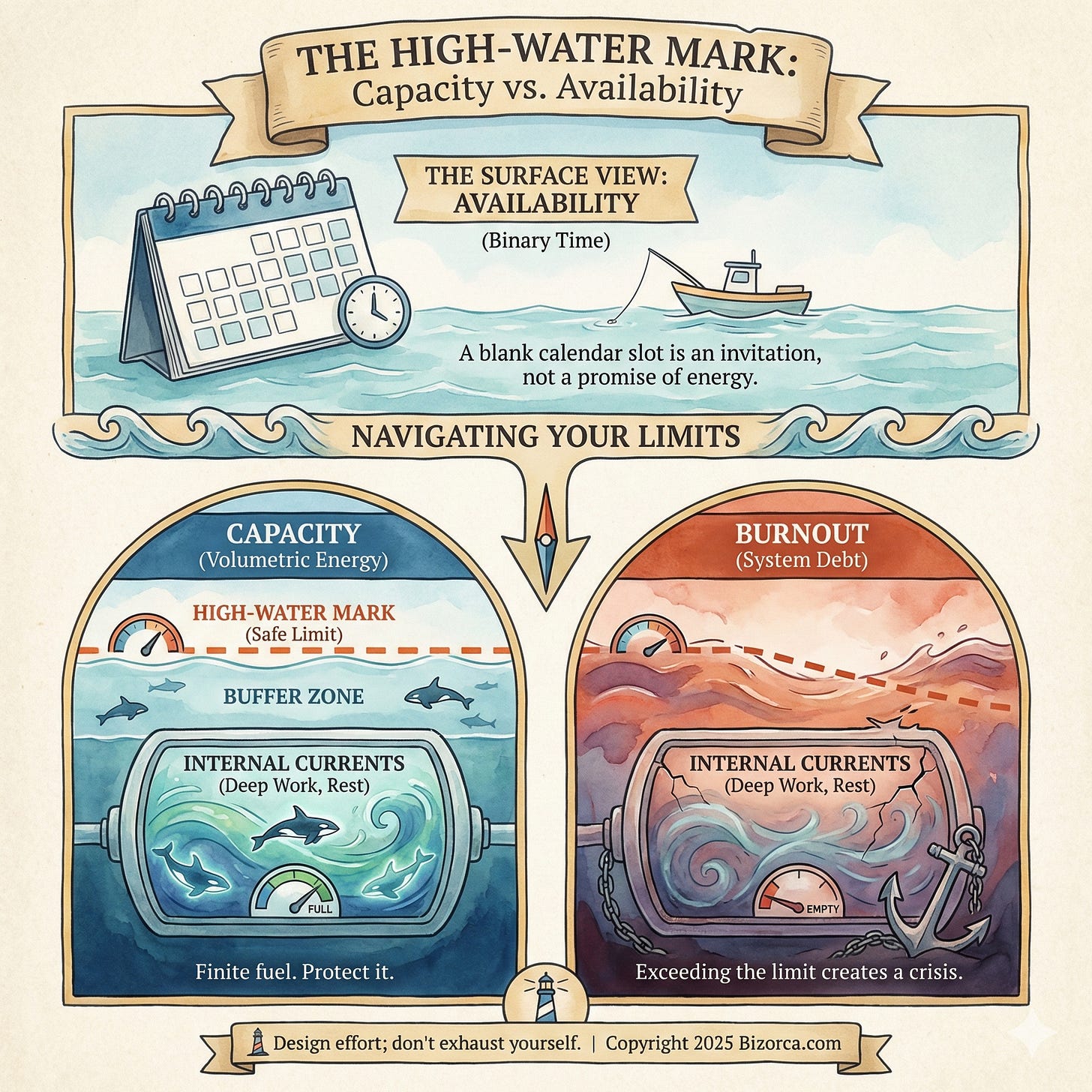 Capacity is a ceiling. It is the total volume of work—cognitive, emotional, and physical—that you can process before the quality of your output begins to degrade. It is your high-water mark.